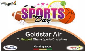 Renowned international airline, Goldstar Air, the wings of Ghana and the belly of America, licensed by the Ghana Civil Aviation Authority, will use its 24-hour service to support all sports disciplines in Ghana and collaborate with organizations to develop a sports museum. This museum will feature statues of past and present heroes and heroines, serving as a hub for tourism.