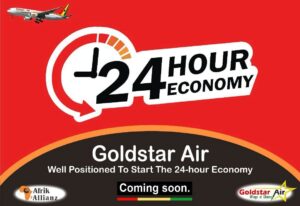 International airline Goldstar Air, a private Ghanaian and United States registered company with an issued Air Carrier License (ACL) from the Ghana Civil Aviation Authority (GCAA) to operate passenger and cargo flights across West Africa and Intercontinental routes is well positioned to start the 24-hour economy.