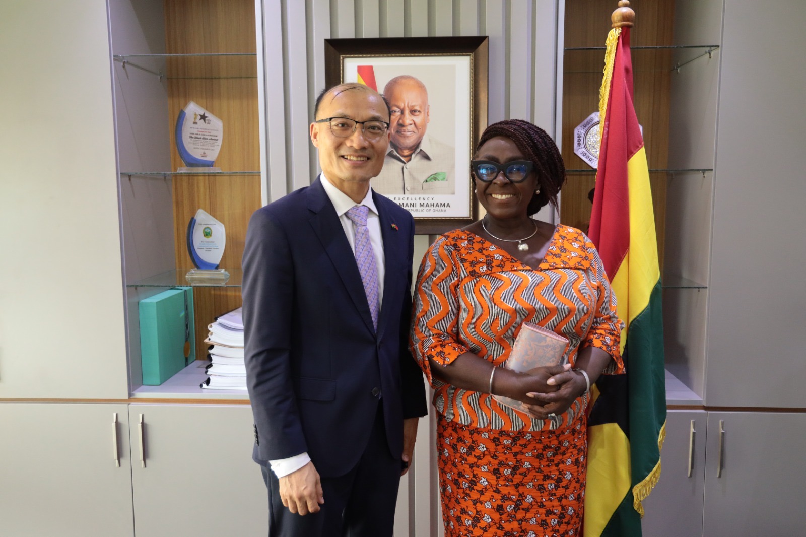 China to Ghana, H.E. Tong Defa, on Tuesday, April 29, 2025, paid a courtesy call on the Minister for Tourism, Culture and Creative Arts, Hon. Abla Dzifa Gomashie (MP), to explore deeper collaboration between the two nations in the areas of tourism promotion, cultural exchange, and support for Ghana’s Creative Arts Industry.