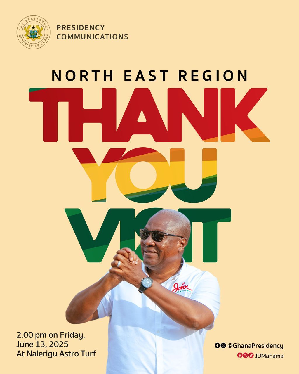 President John Dramani Mahama will on Saturday, June 14, 2025, begin a nationwide post-election “Thank You” tour with a major rally in the Savannah Region.