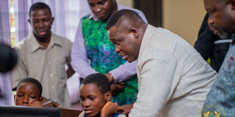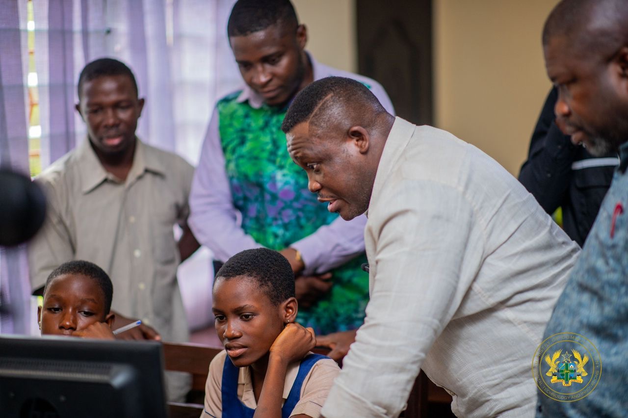 Minister for Communication, Digital Technology and Innovations, Hon. Samuel Nartey George (MP) today paid a working visit to the Girls-In-ICT training centres in the Volta Region to interact with the girls and encourage them to build their abilities in digital skills and STEM education.