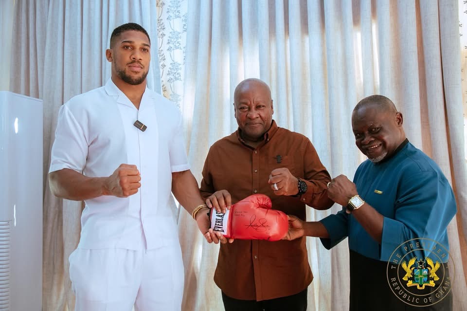 President John Dramani Mahama on Monday welcomed British-Nigerian heavyweight boxer Anthony Joshua and Ghana’s boxing legend Azumah “Zoom Zoom” Nelson to the presidential villa.