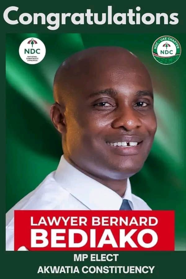 NDC’s Lawyer Bernard Bediako Baodoo has been declared winner of the Akwatia by-election held on Tuesday September 2, 2025.
