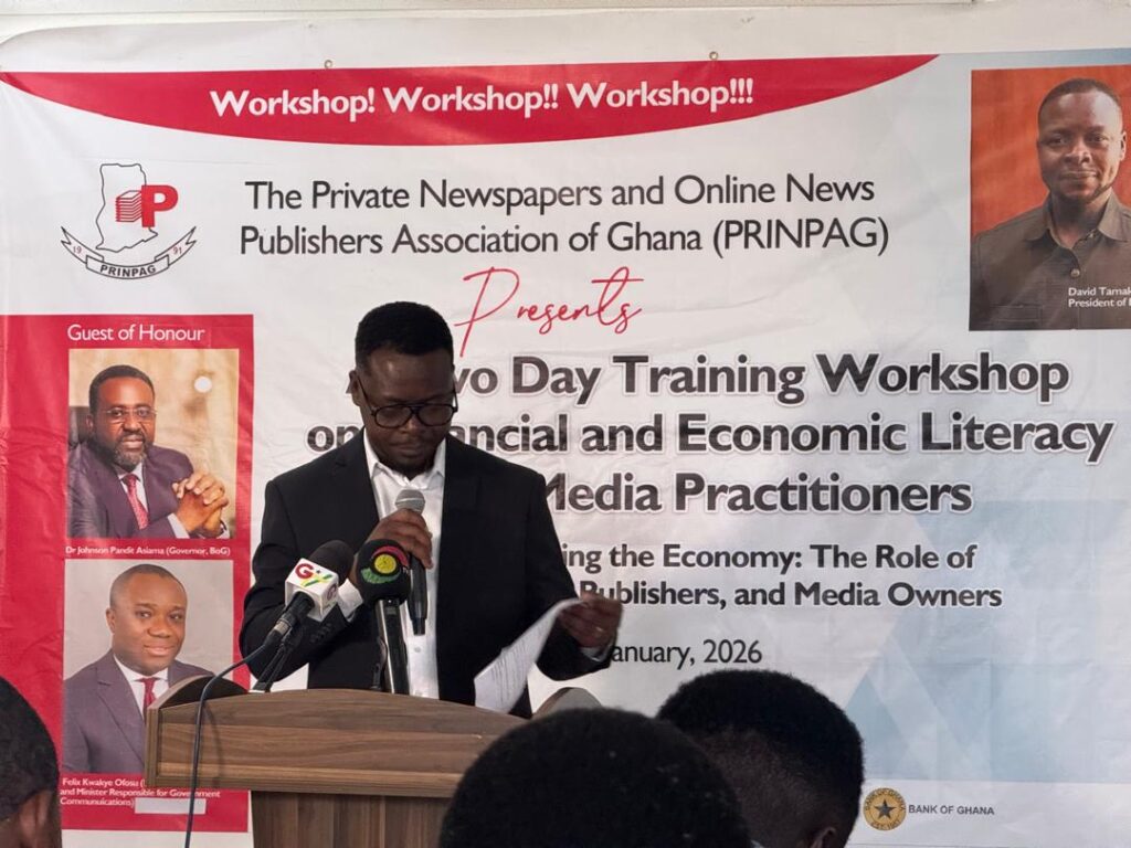 The President of the Private Newspapers and Online Publishers Association of Ghana (PRINPAG), David Sitsopé Tamakloe, has officially opened a national capacity building workshop on economic and financial reporting, organised in partnership with the Bank of Ghana.