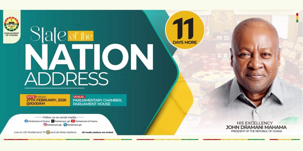The Parliament of Ghana has announced that in 11 days, it will host the President of the Republic of Ghana, John Dramani Mahama, for the presentation of the 2026 State of the Nation Address (SONA).