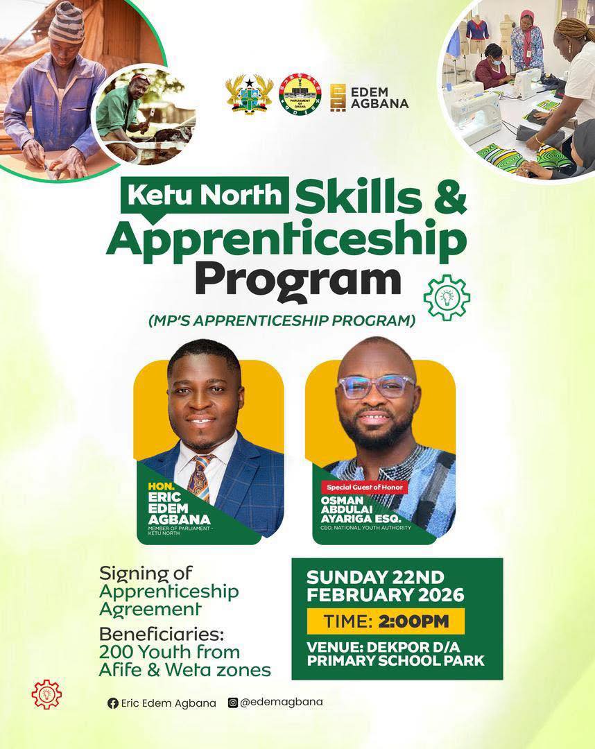 The second phase of the programme is scheduled for Sunday, February 22, 2026, at the Dekpor D/A Primary School Park. This phase will enroll over 200 young people from the Afife and Weta Zones into structured apprenticeship programmes.