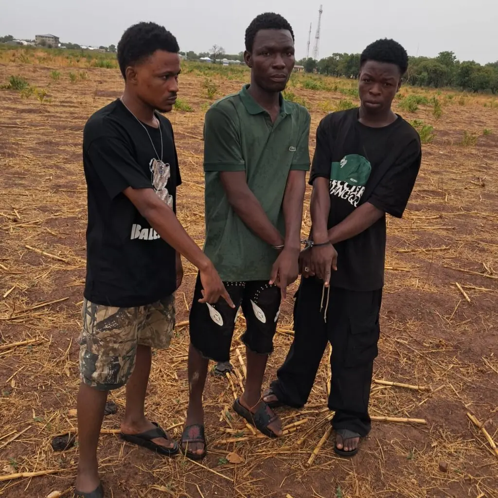 The suspects, identified as Peter Abugri (24), Asuma Shaini (22), and Yakubu Wakasu (19), were arrested following reports of an attack along the Bolga-Nasia road checkpoint. According to the victim, he was assaulted while relieving himself in nearby bushes, with the robbers wielding a pistol and a knife. They stole his iPhone 17 Pro, valued at GH₵21,000, and a Haojue motorbike worth GH₵19,000.